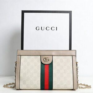 Gucci Ophidia GG Supreme Chain Clutch White and Beige GG Supreme Canvas