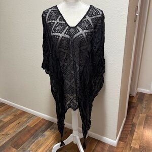Anna & Ava Black Lace One Size V- Neck Kimono/Cover Up Oversized Top