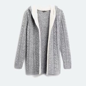Stay warm and stylish with this cozy gray hooded cardigan. Perfect for layering, it offers both comfort and elegance.
