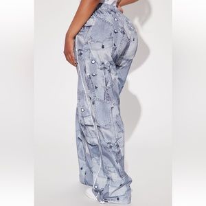 *FIRM PRICE* Elastic waistband. Low rise. Drawstring closure. Toggle detail. Front pockets. *NOT ACTUAL DENIM.* Polyester and Nylon fabric.