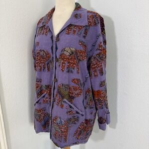 Jacket Womens S M Purple Elephant Patch Artisan Folk Boho Hippie Festival
