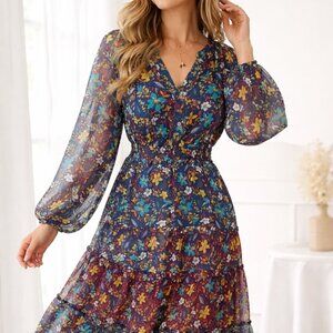 Figueroa & Flower Romantic Boho Maxi Dress M | Cottagecore Floral Tiered