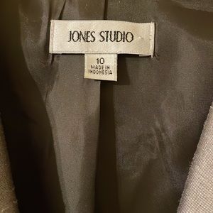 Jones Studio reminiscent of 50’s business classy dress; narrow collar crossing in V - very feminine AND business; wide pleated skirt;