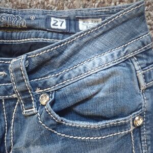 Excellent condition ladies Miss Me mid rise boot jeans. No missing stones or studs. Super cute!