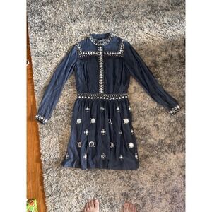 Boston Proper Beaded Denim Dress Beaded Detail Cowgirl Chic Concert Festival 8
