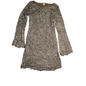 Sundance Pure Elegance Applique Shift Dress Gray Tan M Midi Boho Romantic