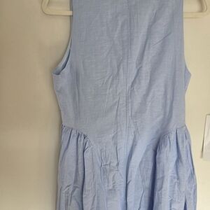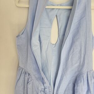 Commense Cotton And Linen Cutout Dress Sz L Blue NWT Beautiful midi / maxi dress sleeveless with cutout. Back zipper closure, crew neck. Lined. Bust: 19" Waist: 17" Length: 51" Measurements approximate and may vary slightly.
