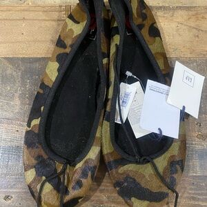 Stylish flats with a unique camouflage design. Features a chic bow on top. Perfect for casual outings.