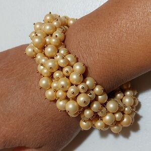 J.crew Retro Vintage Faux Pearl Bead Cluster Gold Tone Cha Cha Bracelet