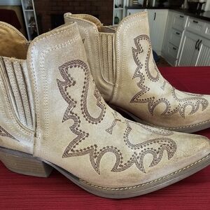 Chic Beige Western Ankle Booties