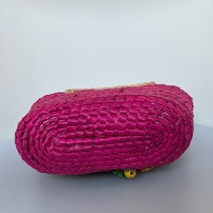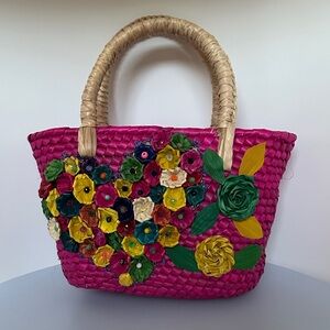 Add a splash of color to your ensemble with this vibrant pink tote bag, featuring beautiful floral accents. Ideal for any occasion.