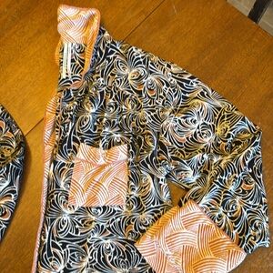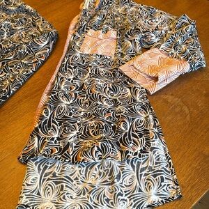 Vibrant print Anthro’s pjs. Good condition with contrast piping on pj top. Elastic waist on bottoms. Loose and comfortable. Sz S pit to pit 19 inches