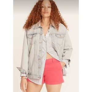 This style features a soft cotton-blend fabric with a relaxed fit and includes shoulder pads for a structured look.