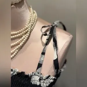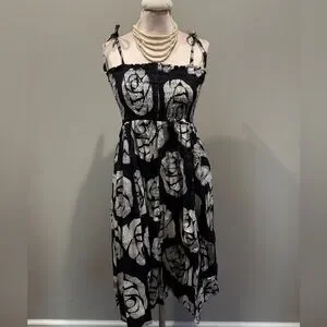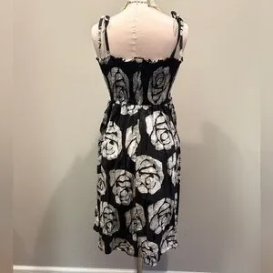 NWT Global Mamas Black/Navy and White Smocked Floral Dress