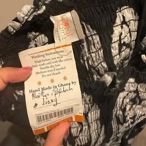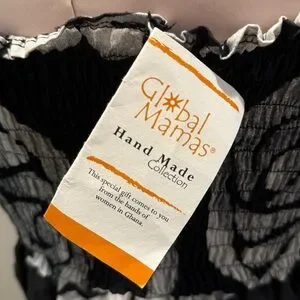 This item is a handmade garment from the Global Mamas collection, which employs women in Ghana to create apparel.