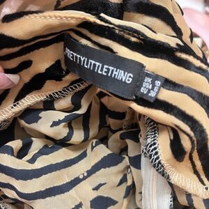 PRETTY LITTLE THING Black Brown Sheer Velvet Zebra Print Halter Jumpsuit XSmall