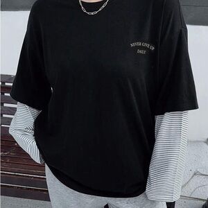 NEW SHEIN Dazy Plus Color Block Letter Print Loose Round Neck Plus Size T-Shirt