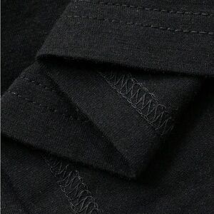 Elevate your style with this chic black top featuring stylish white striped sleeves. Perfect for any casual outing.