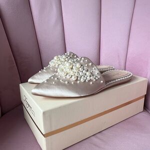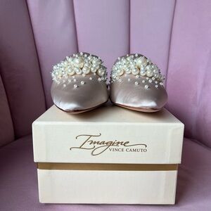 Imagine Vince Camuto “Casele” Pearl-Embellished Bridal Flat Mules | Size 7.5 US