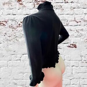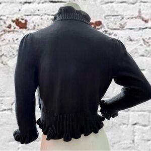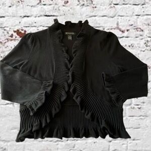 INC Black Ruffle Cropped Cardigan Sweater Jacket Size Medium