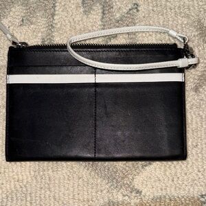 Black and White Tumi Leather Wristlet Clutch