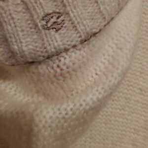 ALT color of the Billabong Dharma sweater that Bella Swan wears in Breaking Dawn Part 1. Cozy cream colored hooded cardigan with oatmeal trim, and brown buttons. Features button closure. Ideal for layering. Purchased in good used condition, and never wore. kept only for collecting purposes. This is a very fuzzy sweater that is prone to pilling and will need a de-shedder to remove the pilling. Acrylic/Nylon/wool blend. PLEASE NOTE there is significant pilling and fuzziness present. Size Medium.