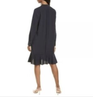 Tory Burch Jane Dress Navy Blue Long Sleeves Ruffled Shirt dress