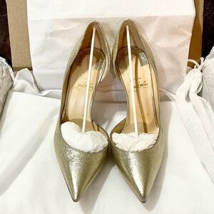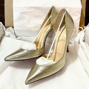 Behold the beautiful “Iriza” stilettos, Christian Louboutin ‘Iriza’ pumps, Champaign gold leather 100mm heels. Not only are these heels sexy, blowout drop dead gorgeous but also comfortable to wear all day long. Hate to let these go. Only worn a couple times for 15min each time on carpeted floors for a shoot.