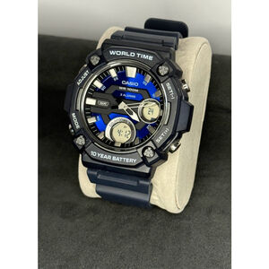 Stay prepared and on time wherever you go with this rugged Casio Men’s World Time Digital/Analog Watch, featuring a bold blue and black design built for durability and performance. This multi-function timepiece offers World Time, a 10-Year Battery, and an impressive 100M water resistance, making it ideal for travel, sports, and everyday wear.