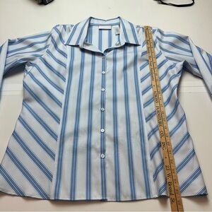 Liz Claiborne Blue & White Striped Button Down100% Cotton Classic Prep Coastal