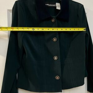 Chic black jacket by Sag Harbor. Features gold buttons and a classic collar. Perfect for versatile styling.