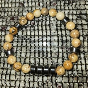Picture Jasper and Hematite Stretch Bracelet_8mm Beads