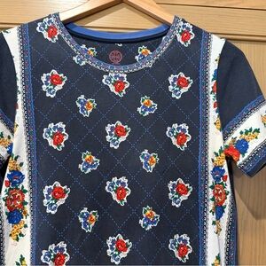 Tory Burch Blue Floral Knit Tee Shirt Dress Cotton / small