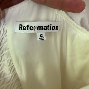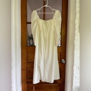 Reformation Isaac Dress in White Ivory Long Sleeves Midi Slit Cotton