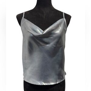 With a draped cowl neckline and a metallic finish, this sleeveless blouse is perfect for a night out.