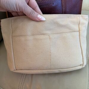 LIKE NEW IN EXCELLENT CONDITION! Used maybe two weeks Stylish tan canvas pouch. Features a secure zipper closure. Perfect for organizing essentials. No stains no tears