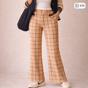 Vintage Y2K Women’s Trouser Pants Beige/tan/navy plaid Flare High rise size 8