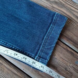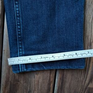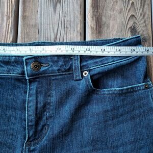 Duluth Trading Co midrise dark wash slim straight jeans. Has stretch so these can actually fit a size 10. Too loose for me (I'm a size 6/8.) Size 8 long. Excellent condition. Has a side thigh pocket and extra back pocket behind the main back right pocket.