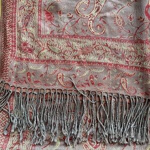 PASHMINA Taupe/Red Paisley Shawl with Fringe