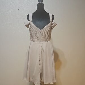 This elegant cream dress features a sleeveless design with a flattering fit. Perfect for any occasion, it offers a sophisticated look.