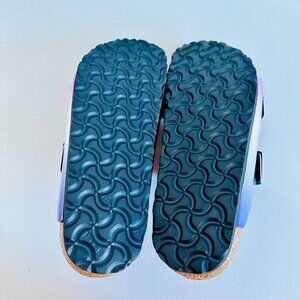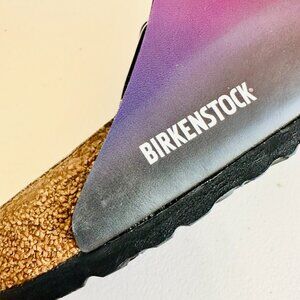 BIRKENSTOCK ARIZONA VEGAN OMBRE PINK AND PURLE SLIDE SANDALS 9/40