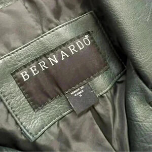 Bernardo Asymmetrical Zip Moto Jacket Women Sz Small Faux Leather Green 7558B373. Preowned condition, normal wear, pictures provided
