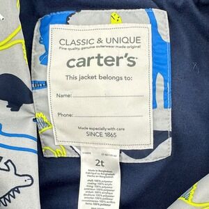 Carter's Dinosaur Print Windbreaker Jacket Kids 2T Gray Blue Raincoaat
