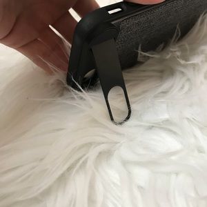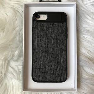 iPhone SE Case. This is a hard case with woven cloth material and and “kickstand” that opens on the back. Brand new.