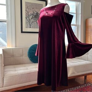 Lauren Ralph Lauren Velvet Merlot Beauty in Size 10. Features Open shoulders with Gorgeous, Flowy Angel Sleeves. SO perfect for the upcoming holidays. The color is a Deep Merlot, becoming slightly iridescent in the light, rendering the dress even more more beautiful. Lined. True to Size: 18.5” underarm to underarm (fabric has stretch as well) and 36” long. Excellent, Like New Condition.