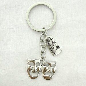 This silver-tone theater keychain features the classic comedy and tragedy masks, symbolizing the heart of stage performance. A thoughtful accessory for actors, directors, drama students, or theater lovers who carry their passion everywhere. Lightweight yet sturdy with a polished finish that catches the light beautifully.