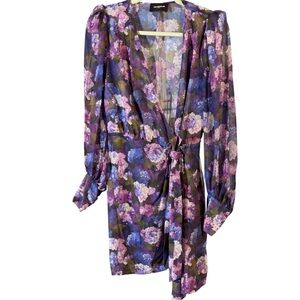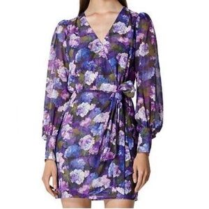 The Kooples Purple Garden Floral Puff Sleeve Wrap Mini Dress New