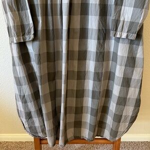 ISHIKO Cotton Gray Checkered Shirt Dress with pockets