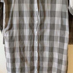 Excellent condition. Oversized shirt dress. Two side pockets. Very cool. Length length 45 inches arm length 20 inches from shoulder under arm to under arm 22 inches across waist 22 inches across hips approximately 26 inches across.
