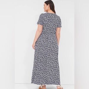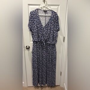 Lane Bryant Blue & Purple Floral V Neck Waist Knot Jersey Maxi Dress Size 22/24